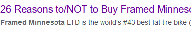 >>1285734 Что-то солидное. А вообще сама контора Фреймд в Миннесоте, собственно, и расположена. Рама, скорее всего, просто каталожная тайваньская. Пишут что FRAMED Exclusive Oversized 6061 Aluminum Alloy frame, но может на пару градусов или мм под себя подогнали.
