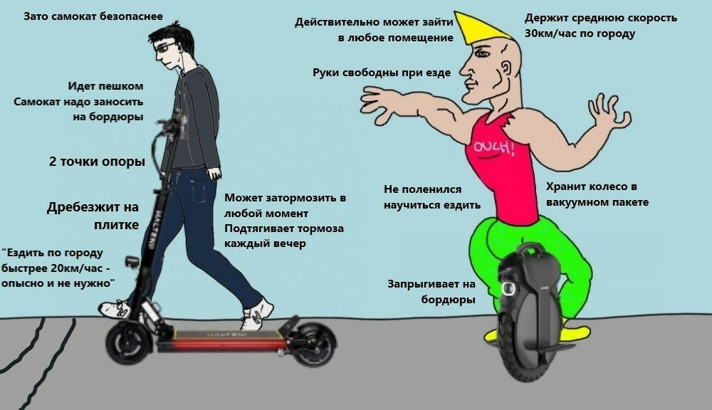 Неделю читаю отзывы и всякие обзоры. И кажется прогреваюсь на моноколесо. Все, кто сравнивал колесо и самокат прям ссутся в восторге от колеса. Но дороховато для меня, эх.