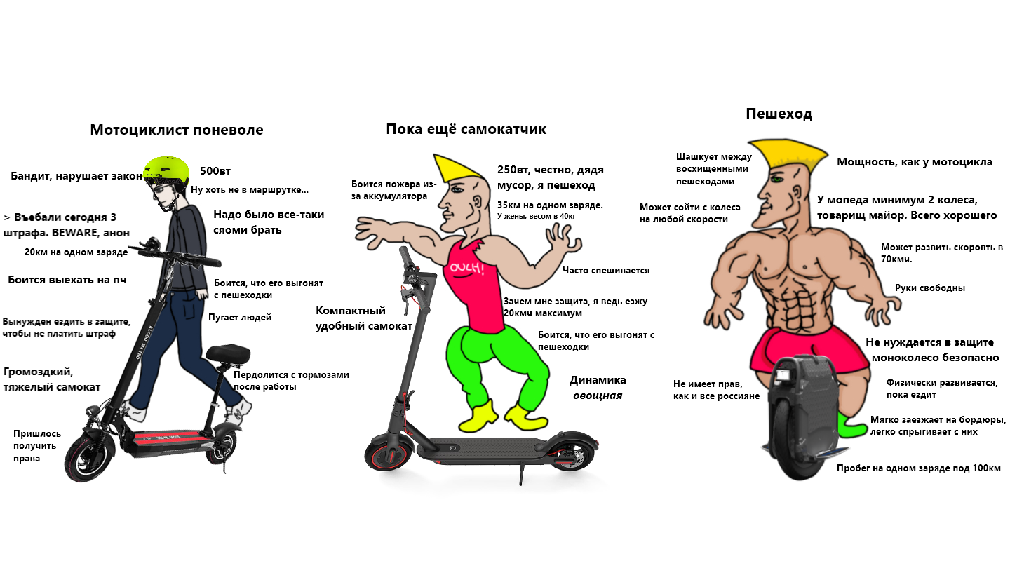 Сап Посоветуй электротык Обязательно до 250вт. Ну или чтобы на нем было написано до 250. Я шиз, мне права не дадут, а влететь на вождение без прав не хочу уже стопали и чекали мощность Был когда-то Сяоми Electric scooter 1s. По мощности вообще было терпимо (25 кмч пару раз на интерес набирал, обычно выше 20 не было, стремно на этой хуйне без тормозов, но вот разгон можно и побыстрее), но без амортизации это пиздец даже на обычной плитке все отбивает, так что хотелось бы с ней Алсо был продан по причине ущербности тротуаров, но за эти 3 года мои основные маршруты отремонтировали Можно и БУ, если цена в хорошем состоянии сильно отличается от нового Ну и чтобы не сдох от вады (в сервис и гидроизоляцию?), я в регионе, где дождь пермачем 250 дней херачит