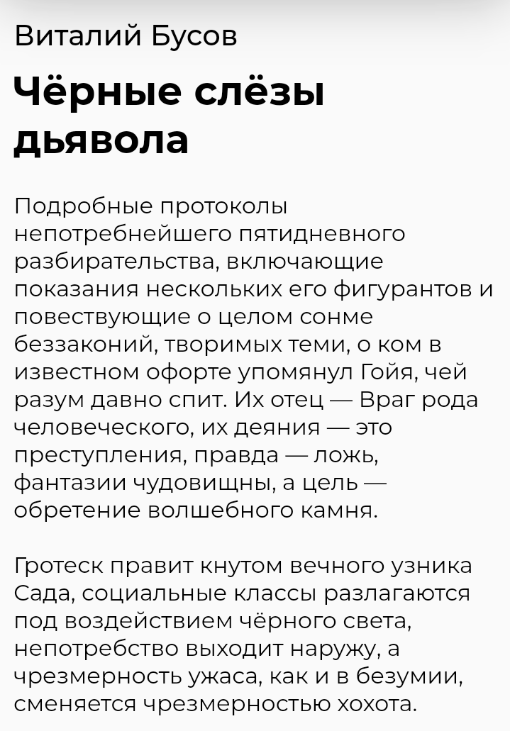 Не по теме треда, автора этого не читал, но знаком с обзорами на его работы. Кто из вас Виталия Бусова читал? К виселицам ангелов, Чёрные слёзы дьявола? Вот это реально стрёмное чтиво.