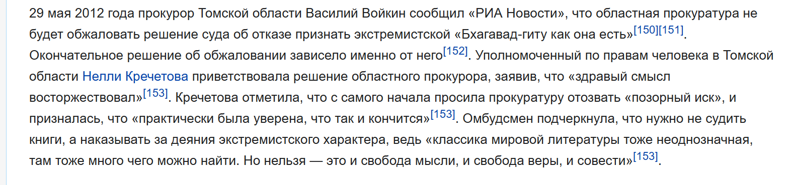 >>1027052 >Запрещена книжка "Bhagavad-Gītā As It Is" от Общества сознания Кришны с ебанутыми комментариями. Да не запрещена вроде, пытались запретить но не запретили, см. пик. Насколько я понял, почти все доступные переводы - это именно этот вариант, с купюрами, остальные редкие для ученых и узких специалистов.