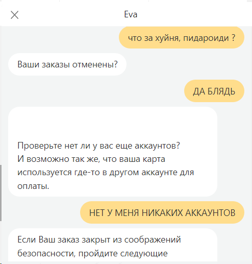Сука ёбаная шлюха!!! Тухлые пиздоглазые гуки заебали со своим обоссанным антифродом: Блядь, заказы с честно взятыми за баллы купонами закрывает к хуям!