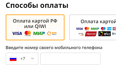 >>119310 >>119311 В мобильном приложении оплата Киви действительно есть, но не работает - после ввода реквизитов и нажатия "оплатить" черный экран, никаких СМС не приходит.