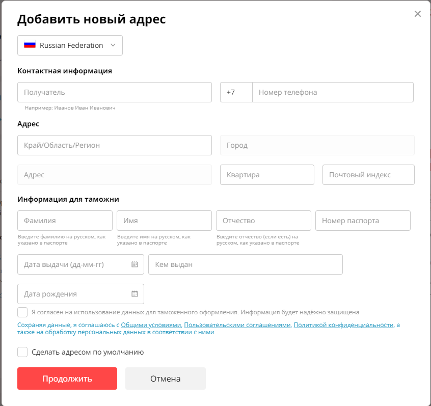 >>119072 > А что, в русскозагоне отменили возможность выбрать пункт выдачи самому, или даже не добавляли? Выбрать его довольно сложно, это нетривиальная тема и происходит через выбор почтового отделения. Мне один раз отправили хрен знает куда, потому что я забыл поменять адрес.