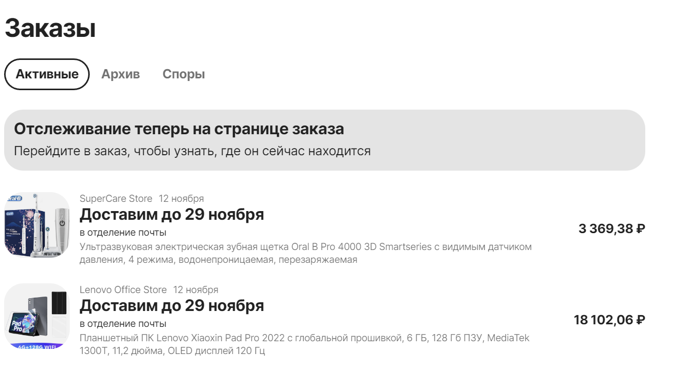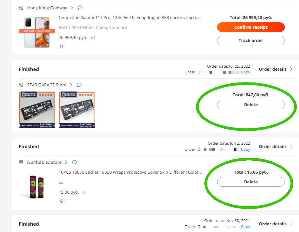 >>123318 >но тут >> https://aliexpress.ru/order-list >заказы остаются всё-равно. Ахаха. Это косорукие програмёры майл.ру . Они просто игнорируют статус "спрятаный" у заказа и всё равно его показывают. Может потом это допилят. Или нет.