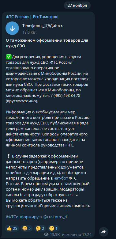 В данный момент пошлина от 1000 долларов за каждую посылку, несколько дней в октябре была 200.