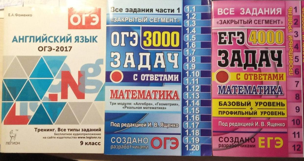 Если есть ОГЭшники или ЕГЭшники, то отпишите мне на почту, продаю очень дёшево старые пособия по ОГЭ + есть пару книг по ЕГЭ (на фото, к примеру, хороший сборник заданий по математике с базой и профилем). Задания не особо поменялись, так что думаю вам зайдет. Цена около 100+ рублей, зависимо от конкретной книги. Если берёте несколько, то сильно скину. no.monolith@gmail.com