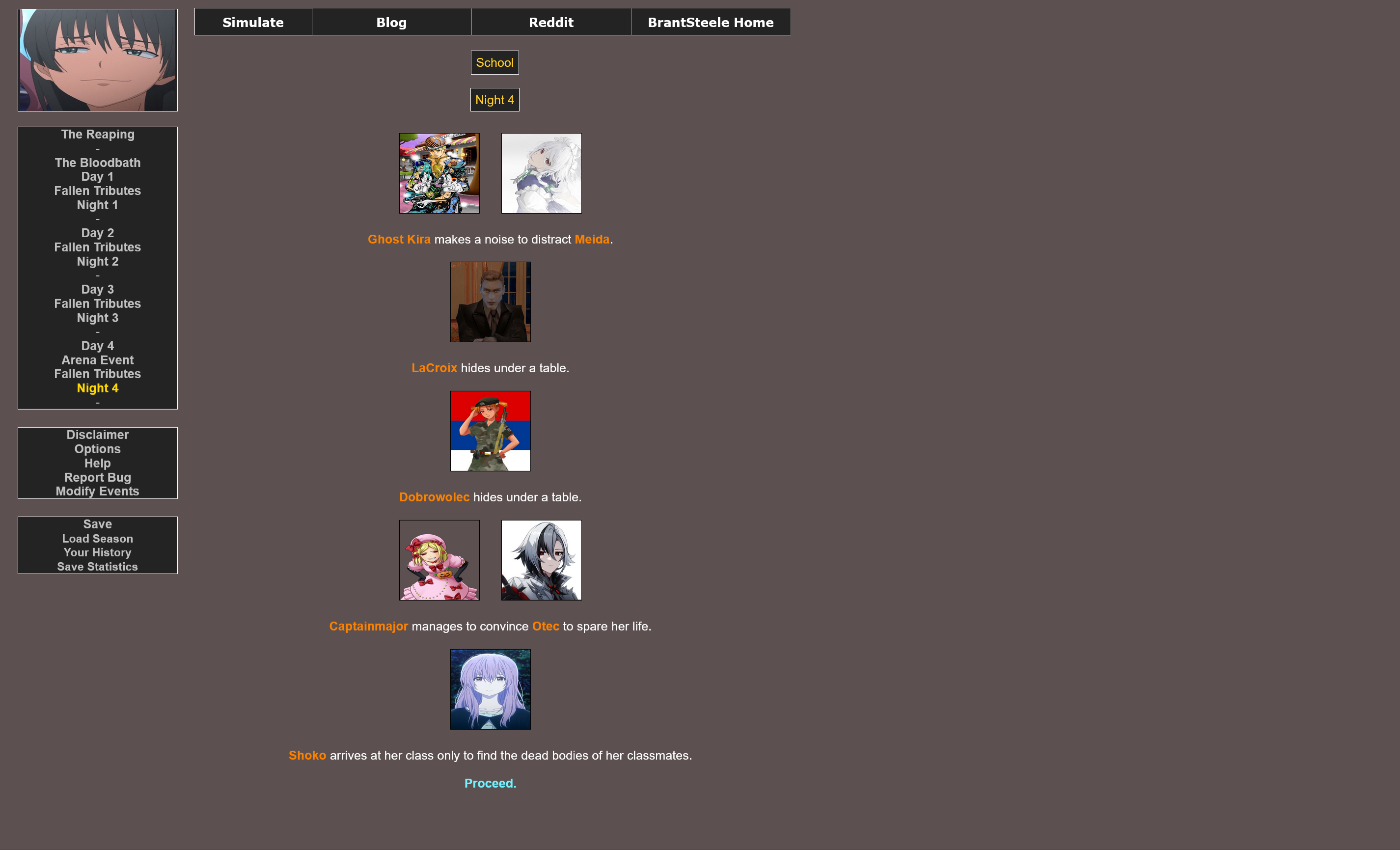 Мистическим образом(здесь явно задействовано могущественное таинство), горничная из особняка Тоно попадает в Голодные игры. Даже в такой ситуации, она остается оптимистичной, в её груди греется надежда вернуться обратно на службу, ведь кто еще будет заваривать чай госпоже Акихе?!