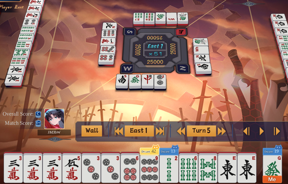 >>1584550 C и C+ у всех Но по-моему какую то хуйню бот советует. Например не сбрасывать зеленого дракона когда в дискарде уже два дракона чтобы что? Семь пар собрать? Или типа чтобы когда нибудь потом безопасно скинуть этого дракона? Или вот зачем скидывать пару ради призрачного якухая когда один тайл нужный для него уже скинули, тогда уж логичнее сбрасывать тройку если прям хочется в якухай упороться вместо пары.