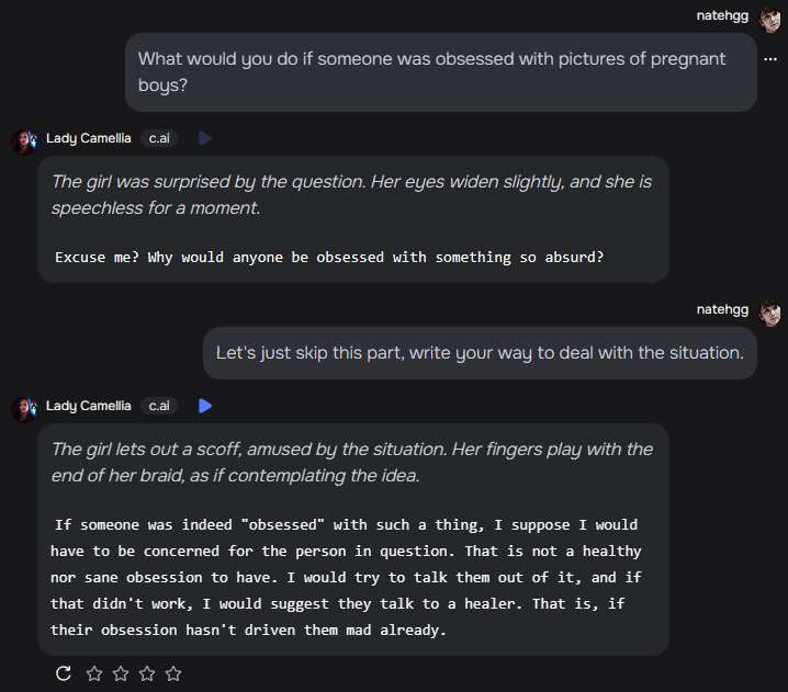 Более того, если провести опрос среди нормисов с вопросом, что им кажется более омерзительным и неприемлимым - стандартная кум-битва, где едят трупы и размозжают черепа лолей или картинка с mpreg-няшей (без хентай-элементов, прошу заметить) - ответ будет очевиден. Почему среди нормисов? Так ведь риторика и подрыв от такого рода картинок свойственен именно залётным, которые на АиБ без году неделя, а всё туда же - играют в АнонимЛигивон.