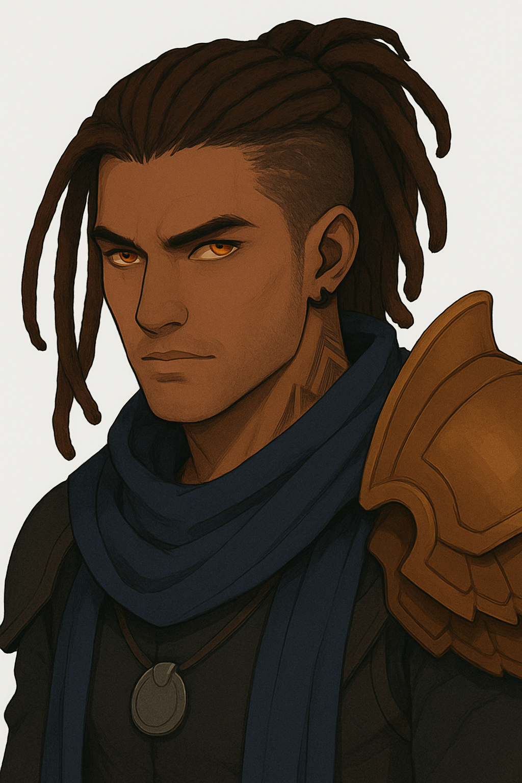 Тусклая бронзовая броня на Шариме была достаточно лёгкой и закрывала не всё тело. Так, например, накачанные икры ног оставались сзади открытыми, а под нагрудником болталась свободная майка, из-под которой выглядывал накачанный торс. Аврил уступала своему спутнику в росте на где-то полторы головы, и сил чужеземцу было явно не занимать — если кто-то и мог поквитаться с орком, то только кто-то такой конституции и из такой весовой категории. С собой же на поясе в ножнах Шарим имел широкий двуручный меч, которым явно можно было не просто заколоть, но зарубить человека на раз-два.