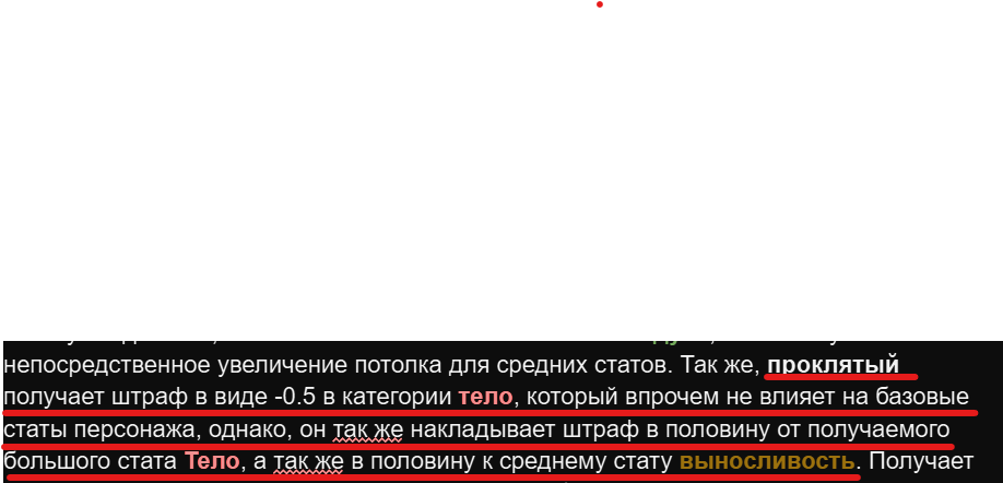 Я сейчас с температурой лежу, так что, может, туплю, но вот этот момент хотелось бы прояснить. При взятии класса проклятого идет -0,5 в главную характеристику тела? Или под "категорией" имеется в виду что-то другое? И как тогда понимать >который впрочем не влияет на базовые статы персонажа Или, это к тому, что главная характеристика "тело" не снижается, но любая прокачка для "тела" и "выносливости" уполовинивается?