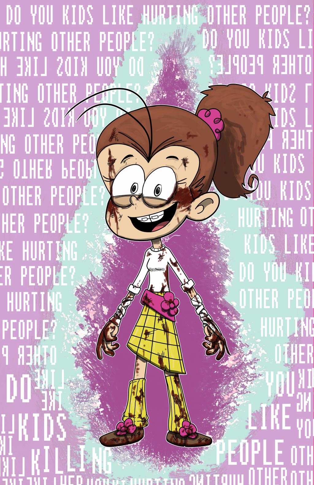 Немножечко пасты про персонажей из Драматики (перевод): Линкольн - средний ребёнок и единственный мальчик в семье. Мелкий себялюбивый засранец, которому постоянно ебут мозги сёстры, потому что он слишком похож на ссыкло, чтобы постоять за себя. Вполне приемлемо для такого кончелицего, бетабаксера-девочки внутри. Лори - самая старшая сестра. Ебануться какая пизда, которая издевается над своими сёстрами лулзов ради. А ещё она использует слово "буквально" каждый ебучий раз. Множество больных ублюдков художников изображают её как доминатрикс и любят рисовать её ебущую Линкольна, пока Бобби ебёт Кэрол. Частая любимица фанатов. От одной только мысли о ней твой хуй скукожится. Лени - вторая старшая сестра. Стереотипная тупая блондинка, которая пиздецки глупа, чтобы что-либо понять, и которой удается выжить только потому, что ее семья делает все за нее. Она очень жуткая, нечеловеческая кельтка с умственной отсталостью и сверхъестественными способностями, и когда она была ребенком, ее ударили по голове и бросили ее настоящая семья, что привело к тому, что ее усыновили в семью Лаудов. Самый худший персонаж по умолчанию. Луна - третья старшая сестра. Она влюблена в одного из членов её группы, Салли. Однажды они потрахались и Луна родила ребёнка, названного Лэндоном. Луан - четвёртая старшая сестра. Всё, что она говорит - дерьмовые шутки. У неё ещё есть канал на Ютубе, который идеально вписывается с остальными бездарными ублюдками, которые думают, что смешны. Её голос до скрежета в зубах очень высок, виной тому актриса озвучки Кристина Пучелли. А ещё она психопатка. Линн-младшая - пятая старшая сестра. Обязательная мужланка, играющая в каждый вид спорта. Постоянно пиздит Линкольна кулаками по ночам. Люси - недоготка, ноющая о том, какая же жизнь дерьмо и пугающая всех до усрачки её социальной отсталостью. Скорее всего, самовыпилится в один момент. Лана - ещё одна мужланка, которая гордится своей отвратительностью . Не имеет настоящих черт характера, и ее единственная цель в сериале - контрастировать с ее соседкой Лолой. Она также мечтает ебать животных, как и ее предки-блондины с спермовидными волосами, которые любили ебать овец, но она поднимает это на ступеньку выше, ебя земноводных, озерных осетров и термитов. Если она была в порнухе, она захотела бы, чтобы ее трахали фурри, пока она вся в дерьме и грязи, попивая ссаки. Лола - пиздецовая соседка Ланы, её близнец с ЧСВ, доставляющим всем геморрой. Часто побеждает в конкурсах красоты незаконными путями. Алсо, шлюха, любит больших дядек, мисс Бимбо-унитаз. Лиза - 4-летняя выпускница колледжа, страдающая синдромом Аспергера, походу ещё более ёбнутая, чем Лори. Постоянно экспериментирует над сёстрами без их согласия.Выплевывает каждое второе слово, которое говорит, и визжит , стучит и записывает, как маниакально смеется из-за своего огромного эгоизма. (А еще семья идиотов с умным ребенком по имени Лиза, это оригинально!) Лили - младенец семьи. Ничего не делает, только срётся и ссытся под себя. А ещё её шипперят с другими персонажами, хотите верьте, хотите нет..