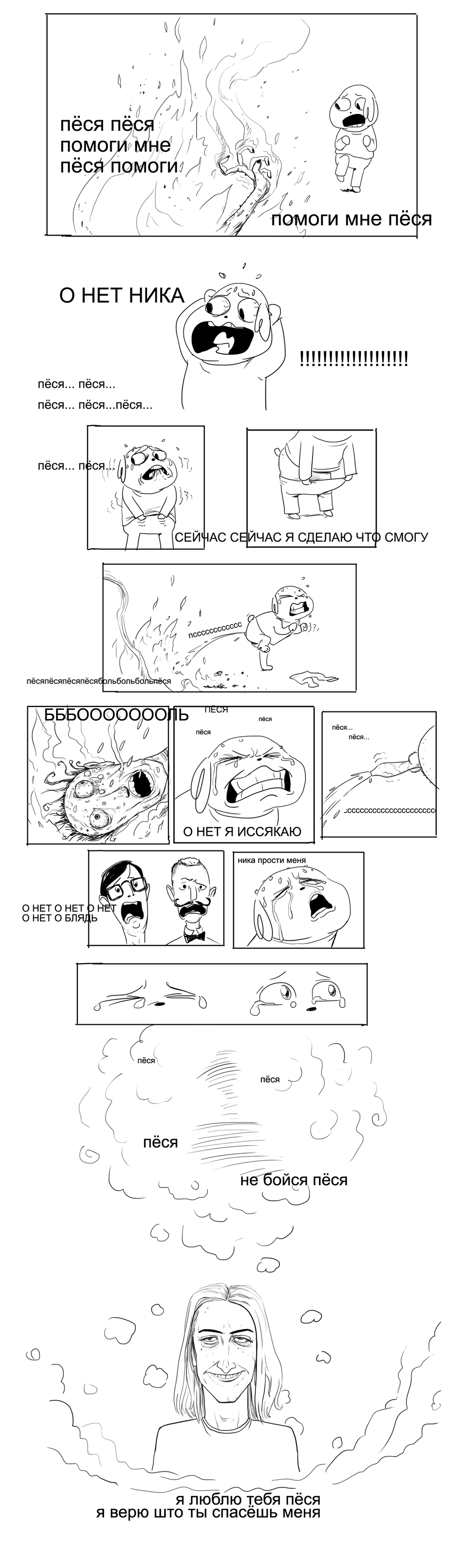 >>1218619 >>1218625 Эта хуйня просто породила мемы (еще на том двоще) "ты ктоооааа" и "крабла" (это звук такой, если что), собсна, единственная её меметичность - слишком уж доморощенная штука была. Еще там главные герои на одной из страниц пересекаются с персонажами Евы, а о чём оно вообще было - нихуя не помню.