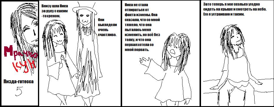>>1218091 Это выглядит так, будто автору было тупо лень дорисовывать шестую часть, в которой главный герой прыгает с крыши, а все окружающие признают его и восхищаются им как самым выдающимся труъ готом