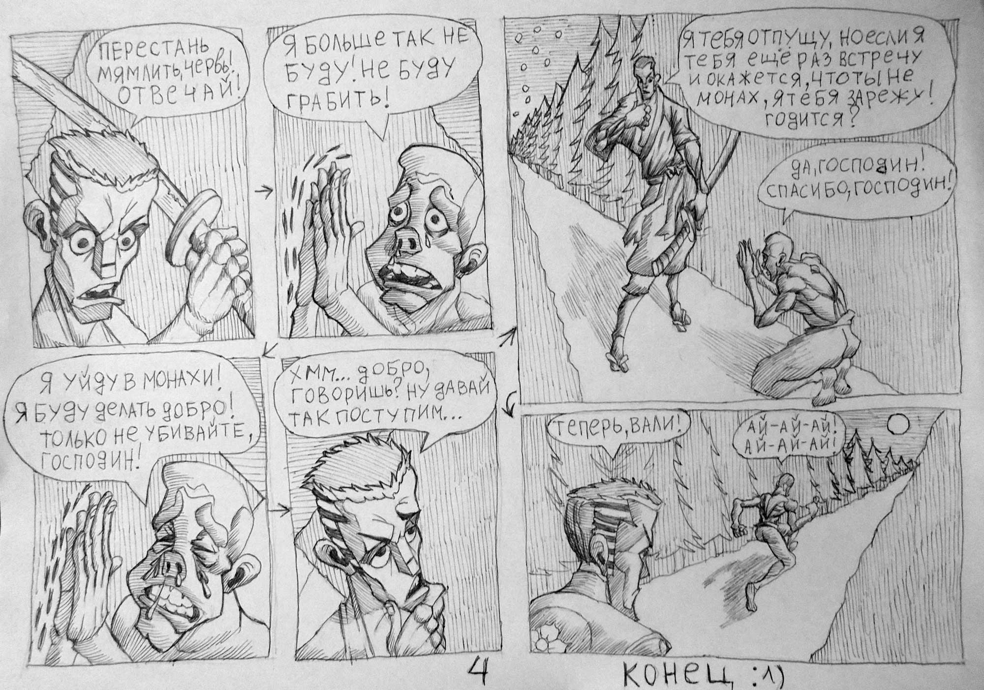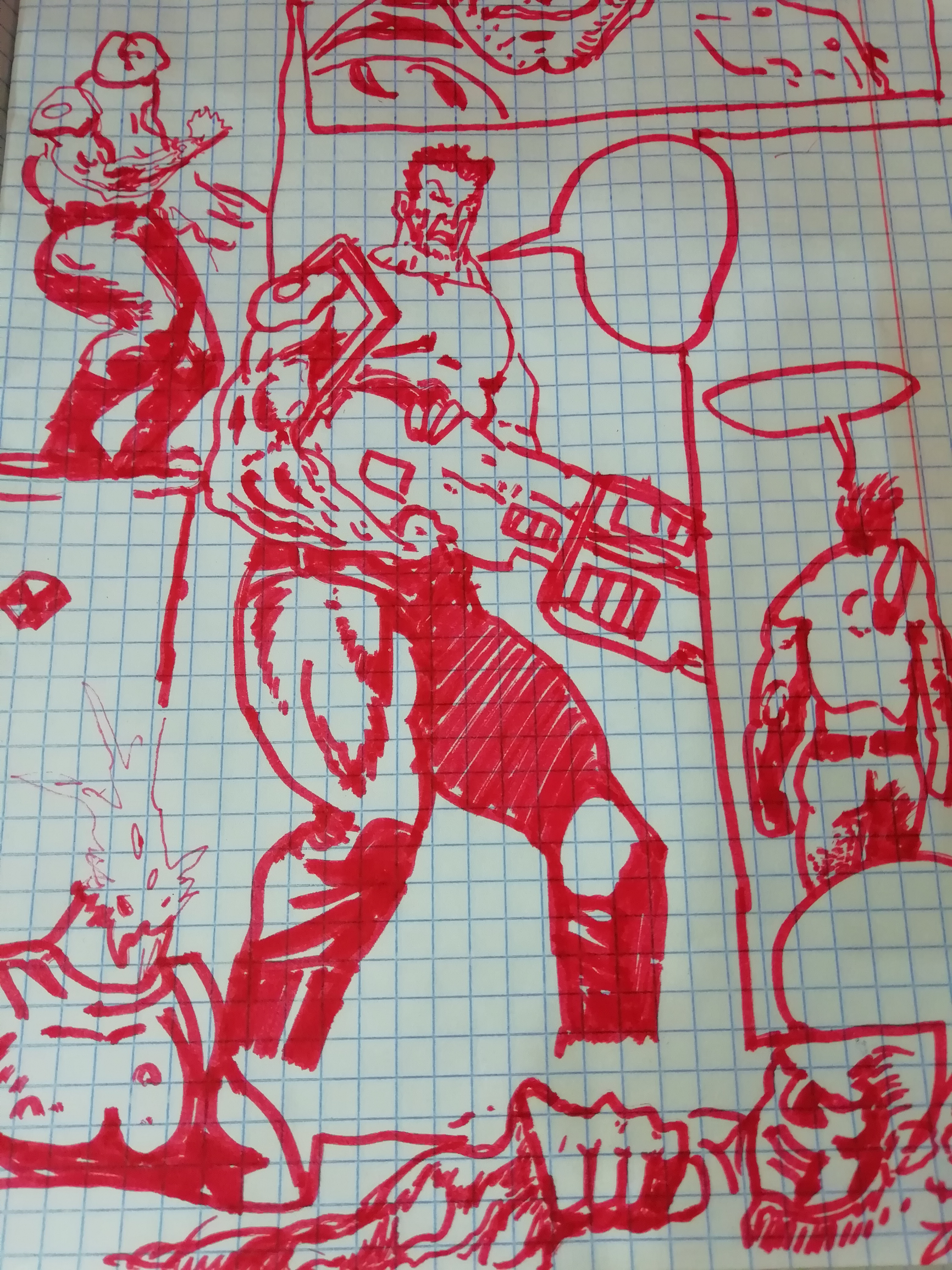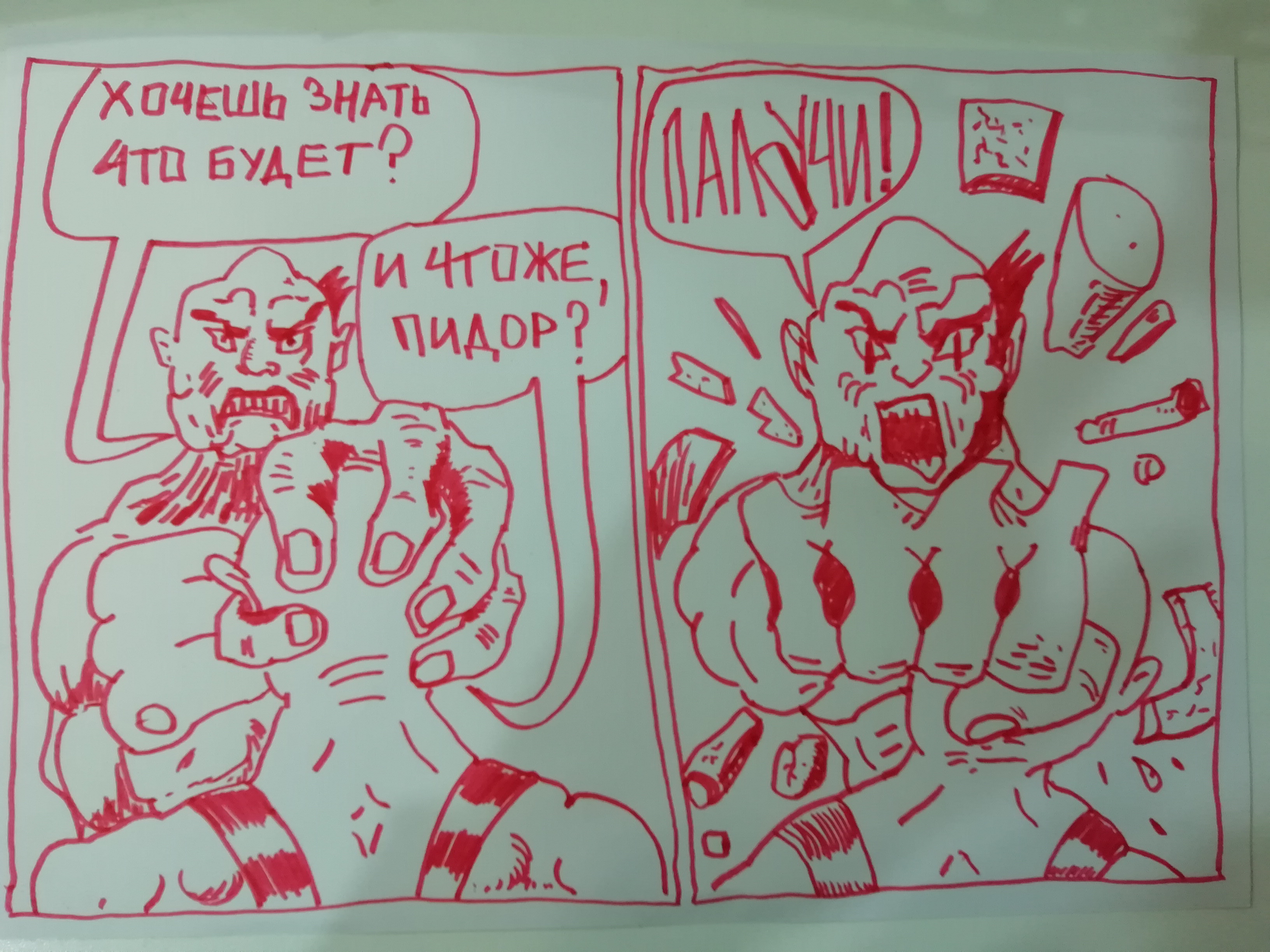 Можно ли на основе этого сделать комикс? Будете ли вы его читать. Могу сделать. Человечки будут прыгать и драться. Рисовал пока дешёвым фломастером на принтерс кой бумаге А4. Поэтому качество низкое. Первая картинка - шутка.