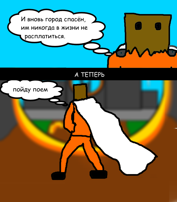 https://vk.com/album-184060658_276500308 Сделал этот комикс на день рождения своей тянучки. Сейчас хочу забацать второй выпуск, но у меня сюжет в голове не складывается. Буду очень рад, если аноны ознакомятся, поделятся мнением и скажут, каким они видят продолжение.