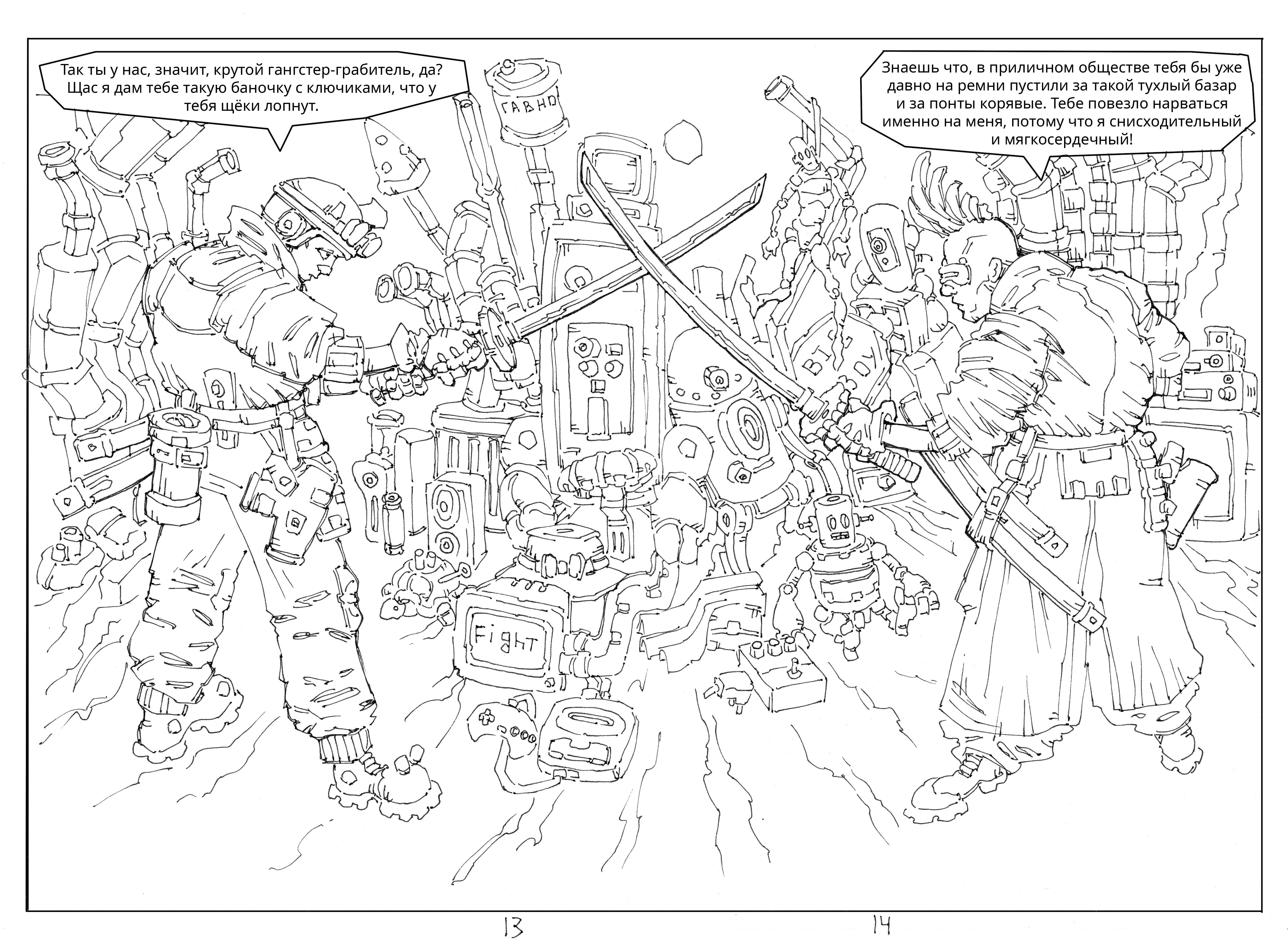 Наделал вот таких вот делов, нарисовал комикс на 28 страниц, сейчас занимаюсь покрасом, но весь красить, скорее всего не буду, решил поделиться, таксээть, с анонами. Последняя картинка - затравка к следующей работе.