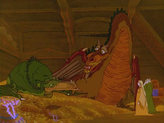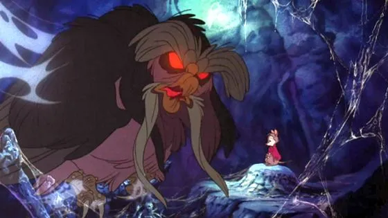 Бамп годному треду! Расскажу про свои детские мультяшные страхи. 1. Как-то в 90-х на первом канале показывали мультик Дона Блута про мышей (American Tail). Там был момент со стрёмной механической крысой, которая открывала и закрывала пасть. Но, вроде, эта башка по какому-то туннелю летела на главный героев. Страшная для меня хрень была. 2. Как и у всех, была кассета с Томом и Джерри. В самом конце была пауза и чёрный экран, а через какое-то время начинался 5-минутный мультик "Завещание человечеству". Там меня пугало мне было лет 5-6, что все люди поубивали друг друга, а потом показывали огромное кладбище с одинаковыми крестами. 3. В мультике про Алладина пугал момент с тигриной башкой. Во-первых, она была 3д-шная и выделялась в 2д-шном мультике. Во-вторых, сам момент был напряжённым, потому что Алладину нужно было успеть за определённое время найти там лампу (да?). 4. "Полёт драконов". Я плохо помню этот мульт, потому что ну очень мелкая была. Но он меня напрягал, там ещё, по-моему, какой-то дракон или кто-то сдох. Пугал вот этот жиробас на пике. Или какой-то похожий, не помню. 5. Не страшный, скорее грустный — "Самсон и Салли". Там был момент, когда разлилась нефть по океану, киты не могли дышать, а кто поднимался на поверхность набраться воздуха, падал на дно, испачкавшись и умирая. Вроде мамка Самсона так померла.