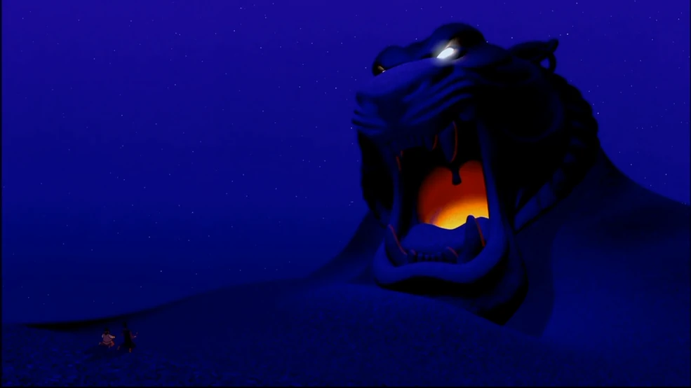 Меня больше всего пугал момент, когда Джафар превращался в шторы (лул), чтобы напомнить Яго не пиздеть лишнего в присутствии султана. У меня ещё книжка была по мультику, где этот момент зачем-то вывели иллюстрацией на весь разворот, я ссался и пролистывал.