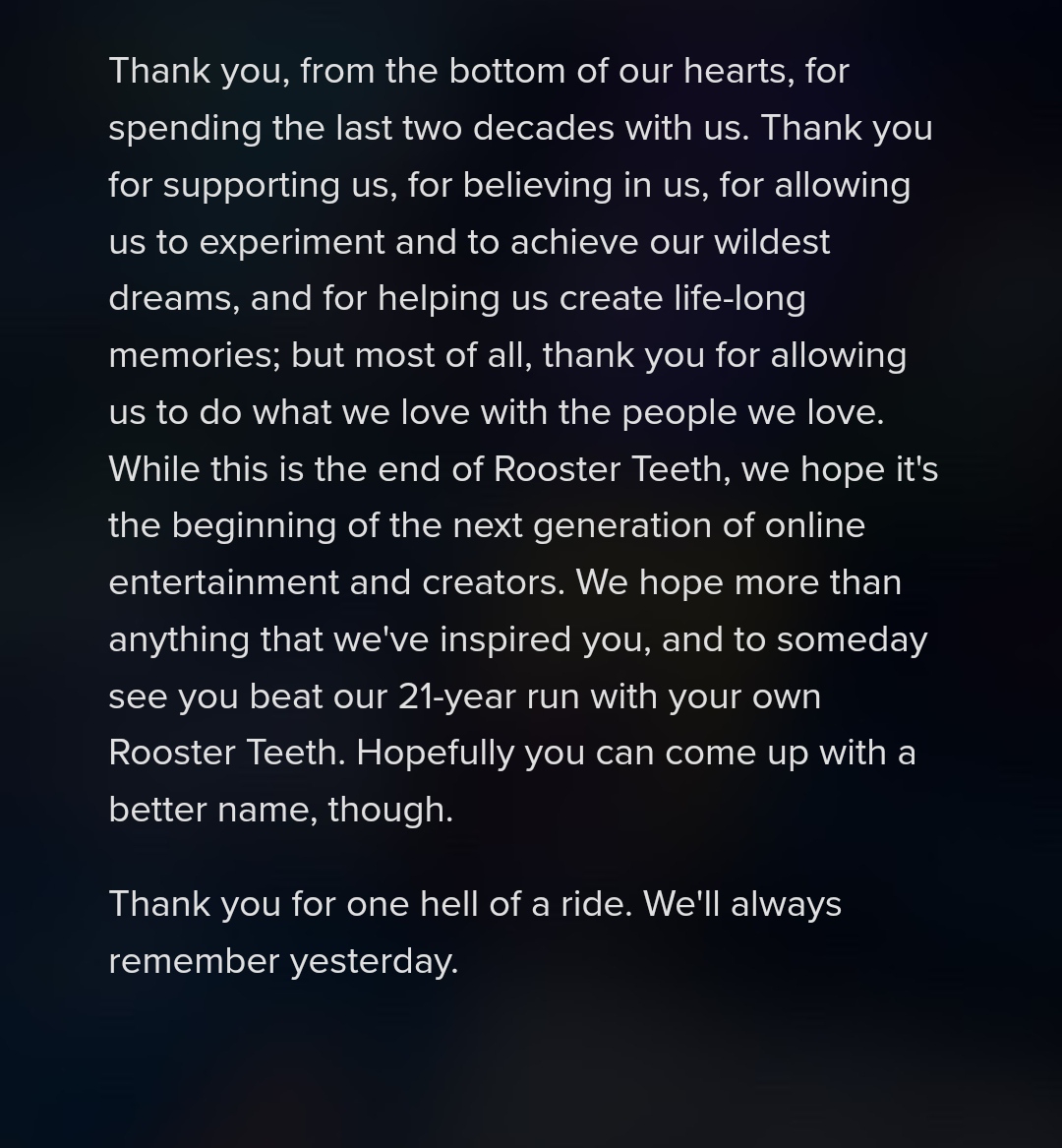 Прочие проекты RT А нет больше вашего RT. В результате гениальных решений Warner Brothers Петухозубы закрываются спустя 20 лет создания контента. Пресс Ф в тред