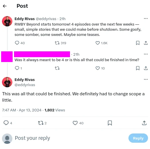 Автор Fixing RWBY (фанфик-аудиокнига со слайдшоу-фанартами, иллюстрирующими повествование) в кои-то веки завершил работу над сценарием фиксинга 7-го сезона, и кинул клич на своём канале, что до 11 марта набирает художников для фанартов.