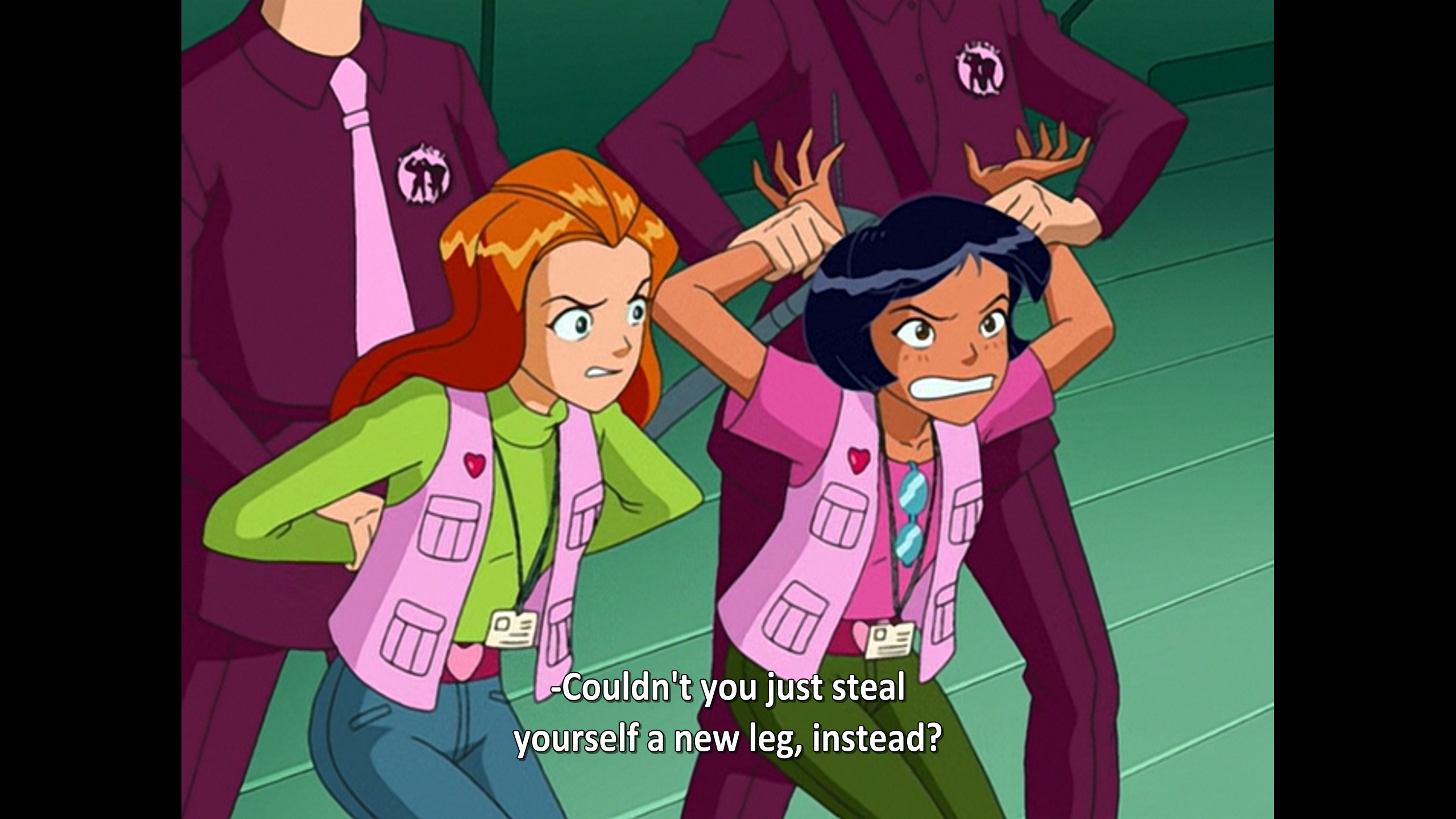Закончив орать с этой серии, я решил снова немного поанализировать мотивацию злых дебилов, и вот чё не понял: почему они меняются частями тел вместо того, чтобы просто отрезать кому-нибудь ногу и выкинуть нахуй расчленённый труп на свалку - ну это понятно, потому же, почему они не отрезают ногу, а пересаживают её в клубах нанотехнологического пара в спецмашине: у нас детский мультик дохуя, и было бы слишком крипово (хотя и так крипово). Но чё она себе ногу не пересадила? Говорит, что интереснее страдать той хуйнёй, которой они страдают. Рыли? Ну ок.