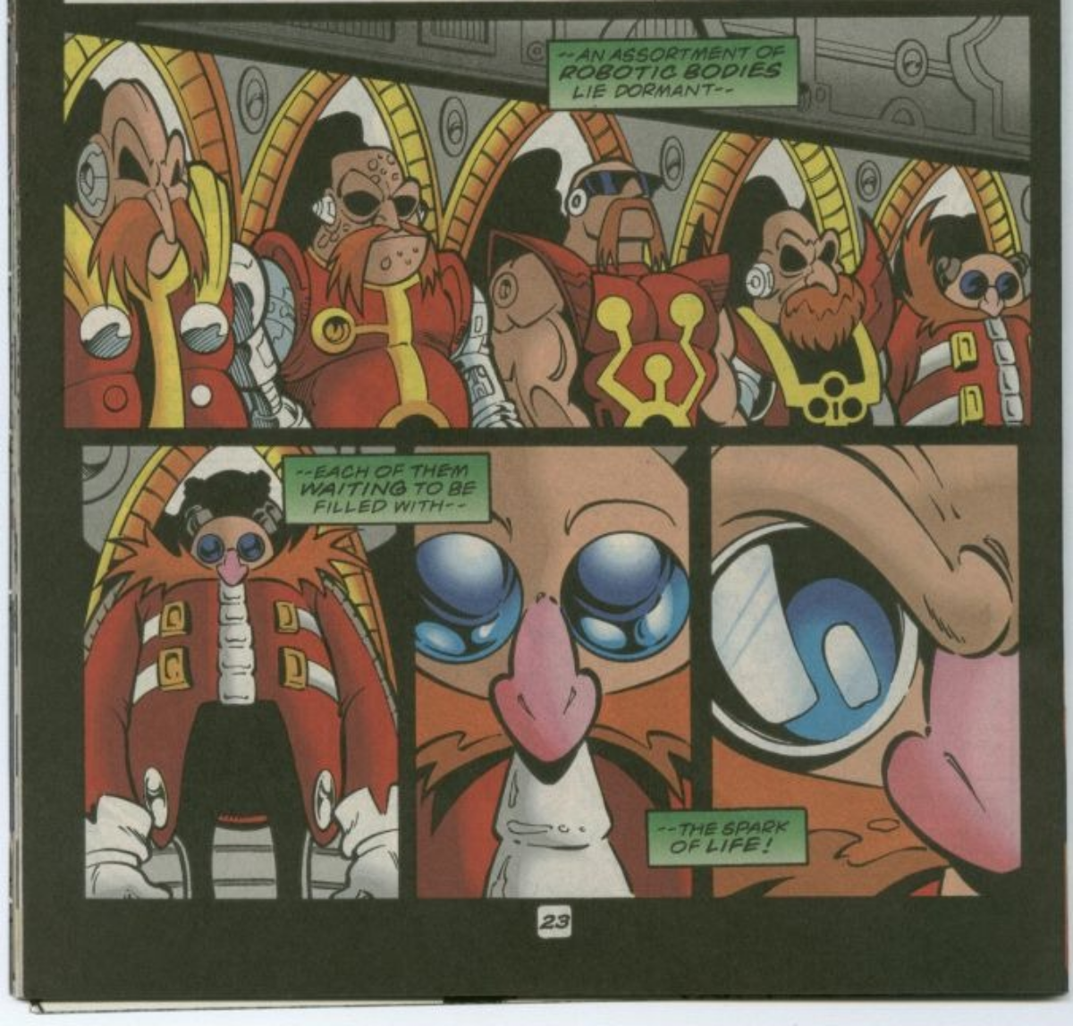 >>1384305 > Эггман потерял память из-за инцидента, забыл что он мастермаинд с мастерпланом и начал мастерить игрушки и карусели для деревенских детишек и так хорошо у него получалось что замастерил себе деревянного робота лучше всех предыдущих вместе взятых, которая имеет свою личность Это же сюжет про папу Карло и Пиноккио, лол. Яйкин теперь многодетный отец-одиночка, как будто Метала с Сейдж авторам комикса было мало.