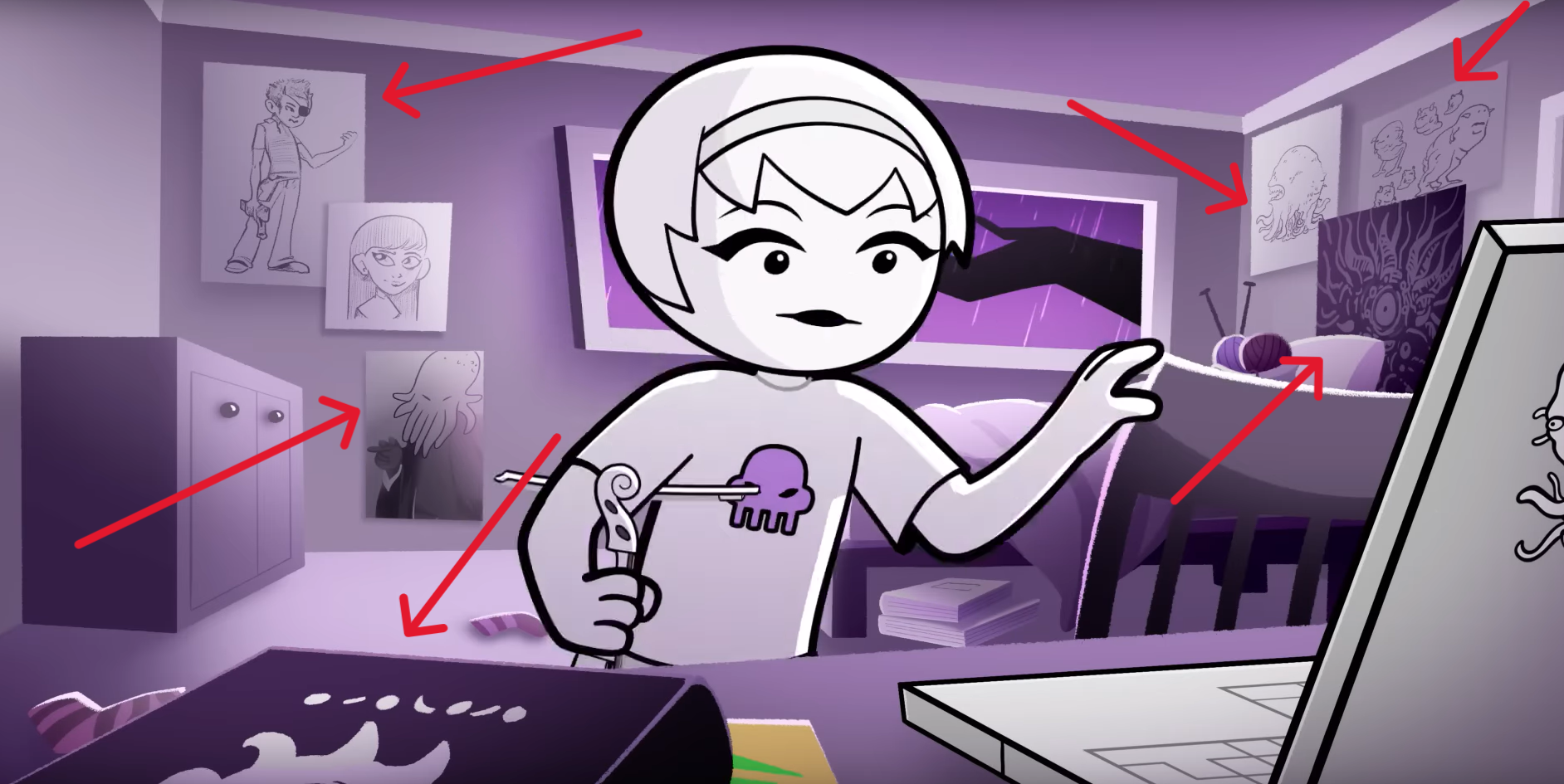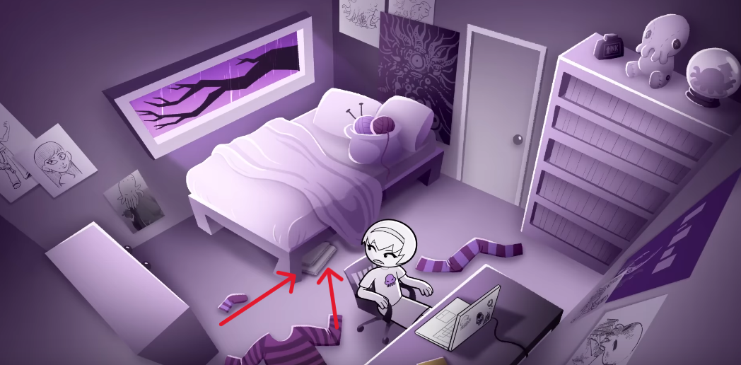 Страхоужасы, они же мобы из Сыщика, гримуар. Всё на месте. Плакат с челиком у которого повязка и ствол это хз, что. Уже не помню. Это наверное какой-то персонаж из дебильных фанфиков Роуз, уже не помню, напомните, кто это?