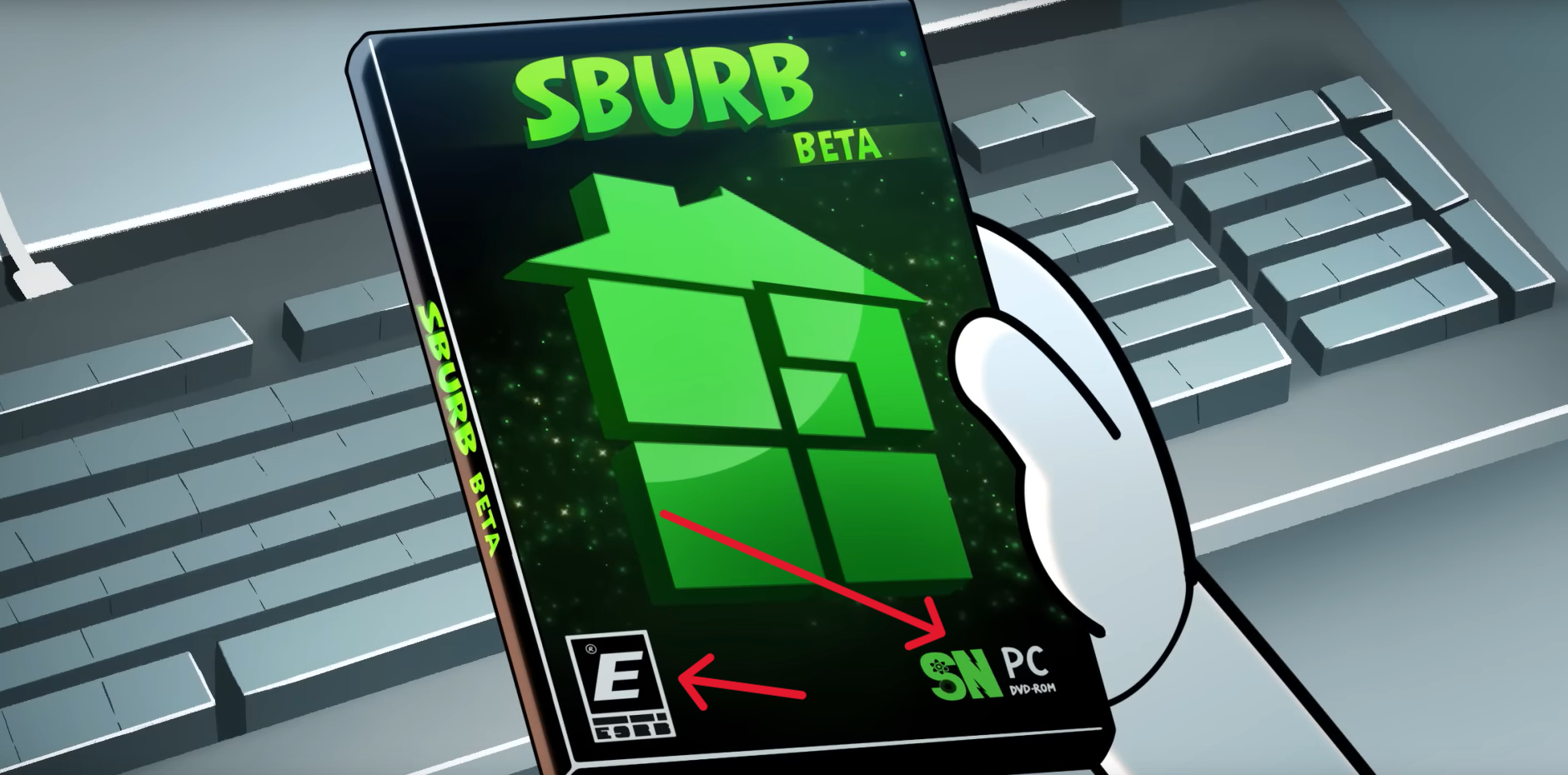 Новый контент. Мы наконец увидим как выглядит коробка от диска Бэты внутри пакета. На задней обложке челиксы от расы Кейси, Поле Битвы, Божество олицетворяющее Лягушку Генезиса. И уже отстроенный дом Джона, что нарушает причинно-следственную связь. Классика хомосрака. На передней обложке логотип Скайя Нетворка, рейтинг возрастной игры!1 Ну и Домик. А вы теперь знаете, что такое Домик.