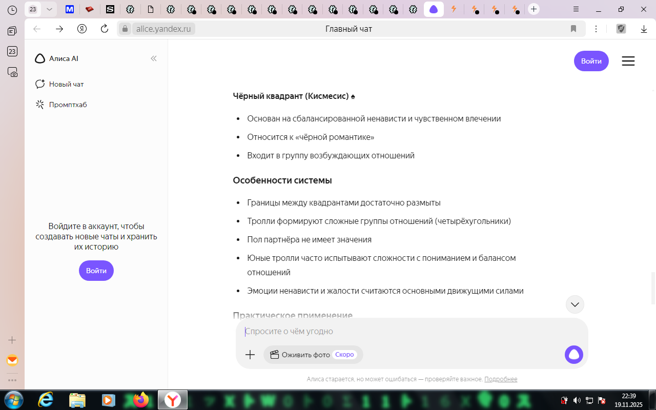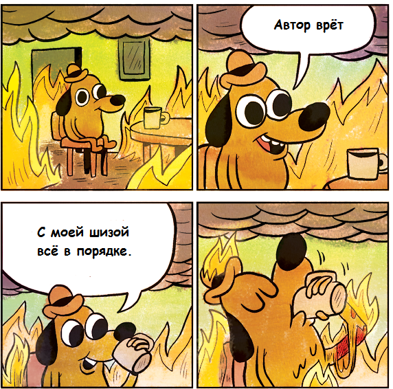 Но Гд уже не слушал. Обычно он вообще не прислушивался к Автору Шизостака(Дружестака), просто молчаливо соглашавшись со всем в пассивно-агрессивной манере, желая выбесить собеседника посильнее. Но в этот раз он задумался как сильно же его двойственная аура повлияла на тред. А также кто же он? Гамзишизик или Гамзидруже? Двойственность разрывала не только мысли ГД но и само повествование…