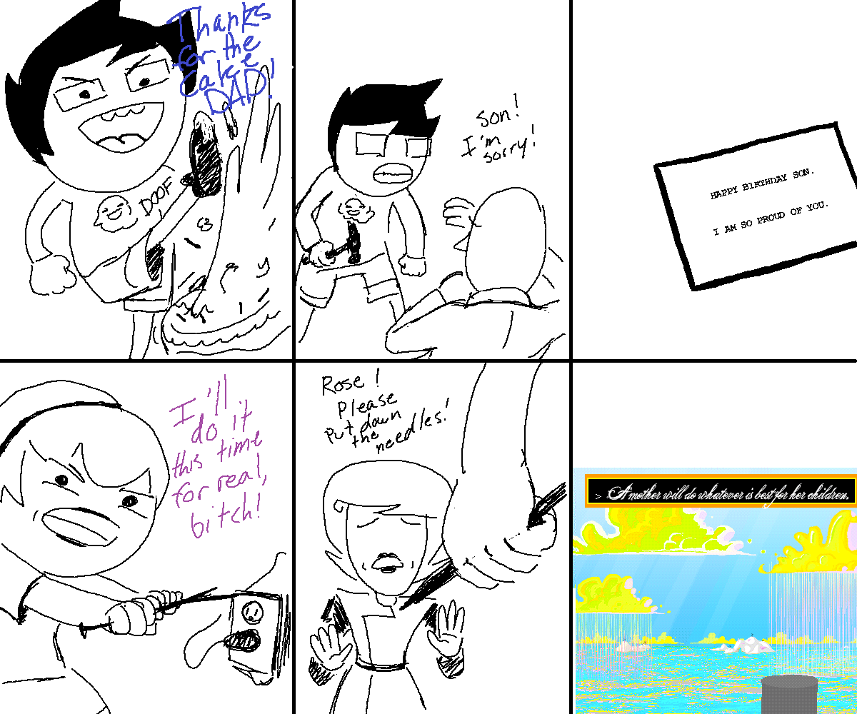 >>1374023 Все нормально.Время идет а Каркат хоть и в другой вселенной так же занимается мазохизмом и долбоебизмом одновременно. Складывается ощущение что он те арты на похуй сделал, краткое описание анцесторов читается как троллинг