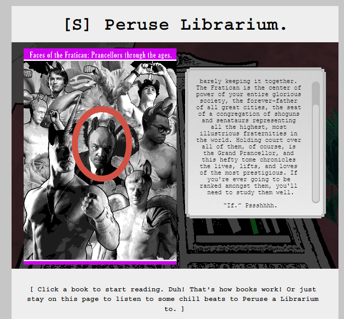 >https://homestuck.net/official/circus-break/115.html It's fucking glorious. It brings a tear to your eye, but otherwise, you keep your composure in the face of this wokeness quite admirably. You've had many years of acclimation to content like this in your 20 years at the woke circus, so you can take it in stride. Your new recruit on the other hand is a very different story. He's in for a hell of a ride.