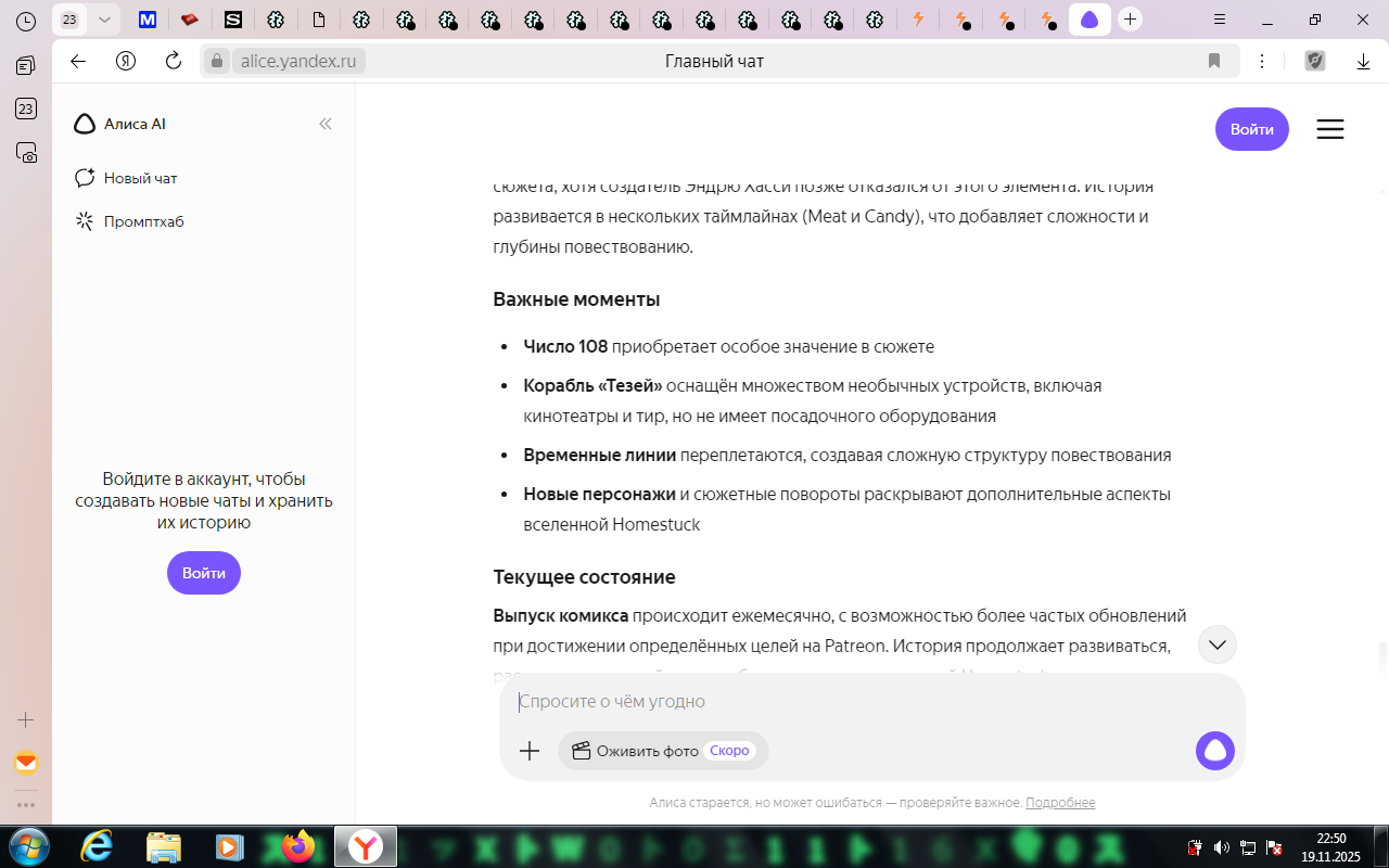 Могу сказать с позиции зумерка что хоумстак для меня ощущается как забытый вин из прежнего интернета, как какая то... античность что ли. Я хз как сравнить. Это такое популярное вроде, но такое заброшенное. Чувствуешь себя будто на раскопках. Причем чем больше читаю, тем больше охуеваю. А ведь кто-то читал это в онгоинге, следил за сюжетом, делал теории. Для кого то это увлечение юности. А сейчас им по 30 лет. Просто пиздец. Самому Тоби Фоксу уже 35 в этом году. Он уже дядя, почти что дошел до кризиса среднего возраста. Хуевое такое ощущение и осознание течение жизни. Пиздец. Ну... Читать я всё же буду. Надо опять начать. Хочу читать дальше для интереса, наблюдение за культурным феноменом начала 10-ых и для вдохновления.