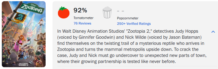 Ну понятно теперь, почему я забыл. В последний раз Rotten Tomatoes открывал где-то во времена охотниц за привидениями. С какого-то момента просто дошло, что там примерно столько же честных оценок, сколько и на метакритике и всяких айджиэнах.