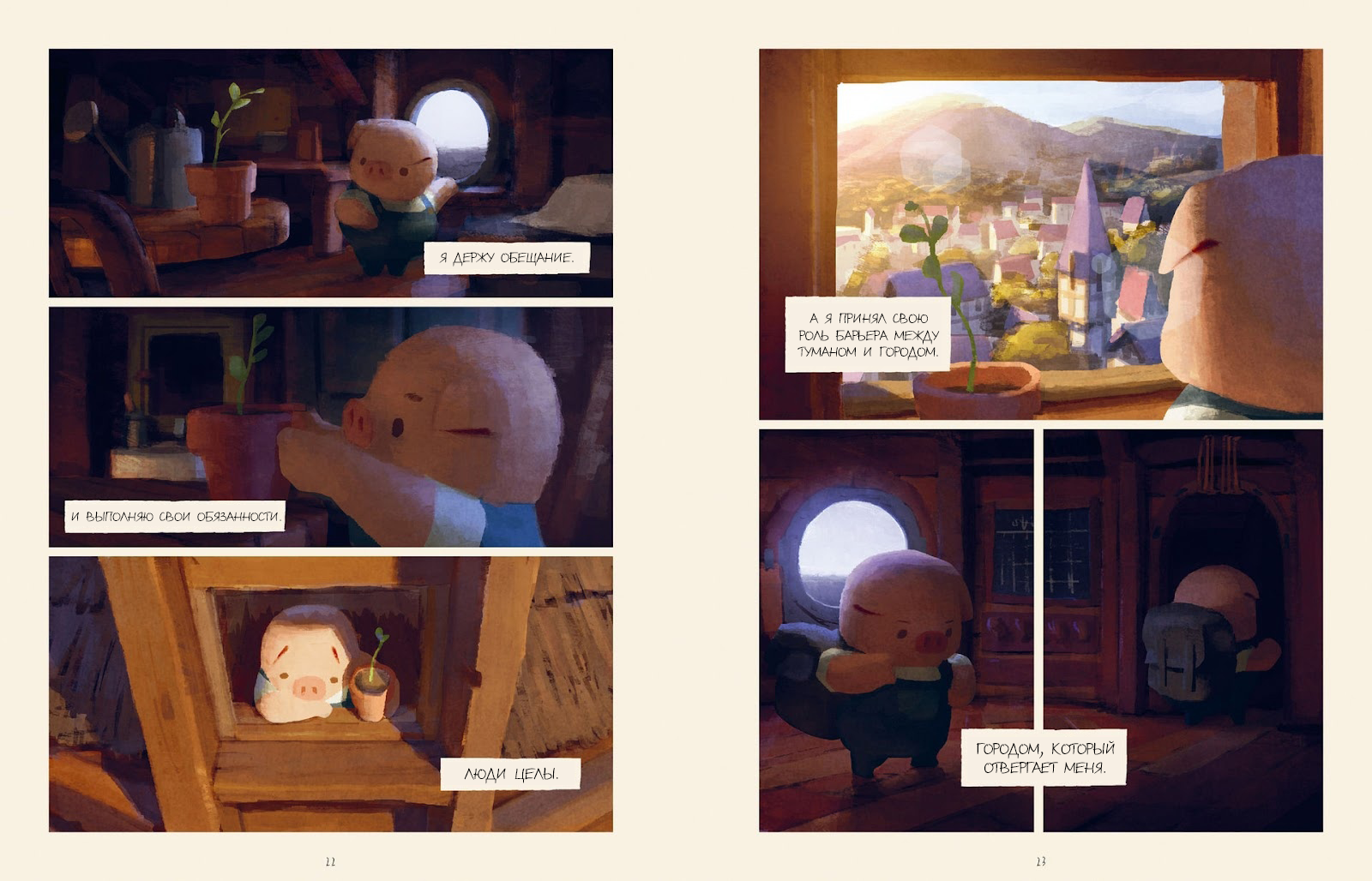Комикс о приключениях антропоморфных зверят, которые живут в единственном уцелевшем в мире городе. Мир уничтожен смертоносным чёрным туманом. Остался лишь один город, жители которого, казалось, и не замечают того, что происходит за его пределами, продолжая жить отстранённой идиллической жизнью. Но мало кто знает, что своим благополучием город обязан одному маленькому свинёнку, присматривающему за плотиной. Ведь только плотина способна сдержать гибельный туман, оставляющий после себя лишь иссохшие мёртвые деревья.