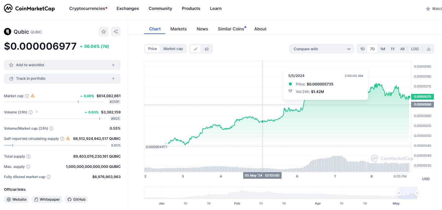 Qubic - слишком много хайпа чтобы не вырасти, любимчик твиттера и нищеебных школьников проебавших Каспу по 0,0003$.