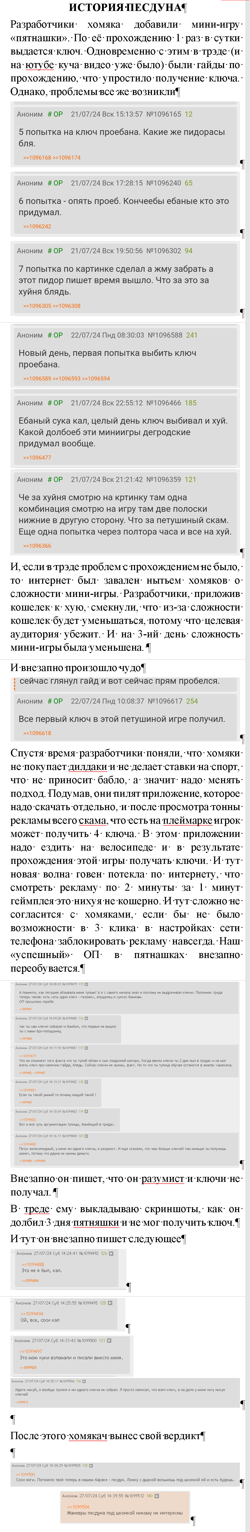 >>1103745 > Педали не крутишь - хорошо Кал для дебилов > Не смог пройти миниигры - плохо Не захожу в эту ебань дольше чем на 20 секунд, поэтому даже не пробовал > За 30 дней получить только легенду и 2,7 млн дохода - пиздец. Типа этого мало, или что? Я суммарно в день на хомяка трачу около 1 минуты, я же не долбоеб вообще. > Не смотрел видео на ютубе - хорошо. Ну это я вообще хуй знает для кого сделано. Ну хотя знаю. Для хомячья ебаного. >>1103746 Ну а ты думаешь, кто-то вообще что-то получит? Нихуя, лол. Так что да, действительно скаманет всех. Вот тогда и посмеёмся все вместе. Но больше всех смеяться буду я. >>1103755 Аргументы будут, нищий безработный лох-чмошник?