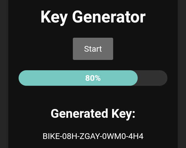 BIKE-23G-S3ZK-0RAT-BGX короче вот вам мой первый код, это реально калище какое-то, гонял гонял и ничего, в итоге рекламу посмотрел и ключ дали лучше бы они автоиграйку мобильную добавили нормальную а не это нах