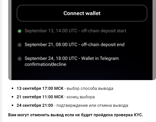 >>1124792 Если есть акк на бирже, то вывод ставь на биржу. Тг кошель и всё с ним связанное будет лагать как говно жопы, а тут в первую очередь важно слить эти копейки, которые дадут, на максимуме цены, ибо через минут 20 оно укатается в дно на все гда
