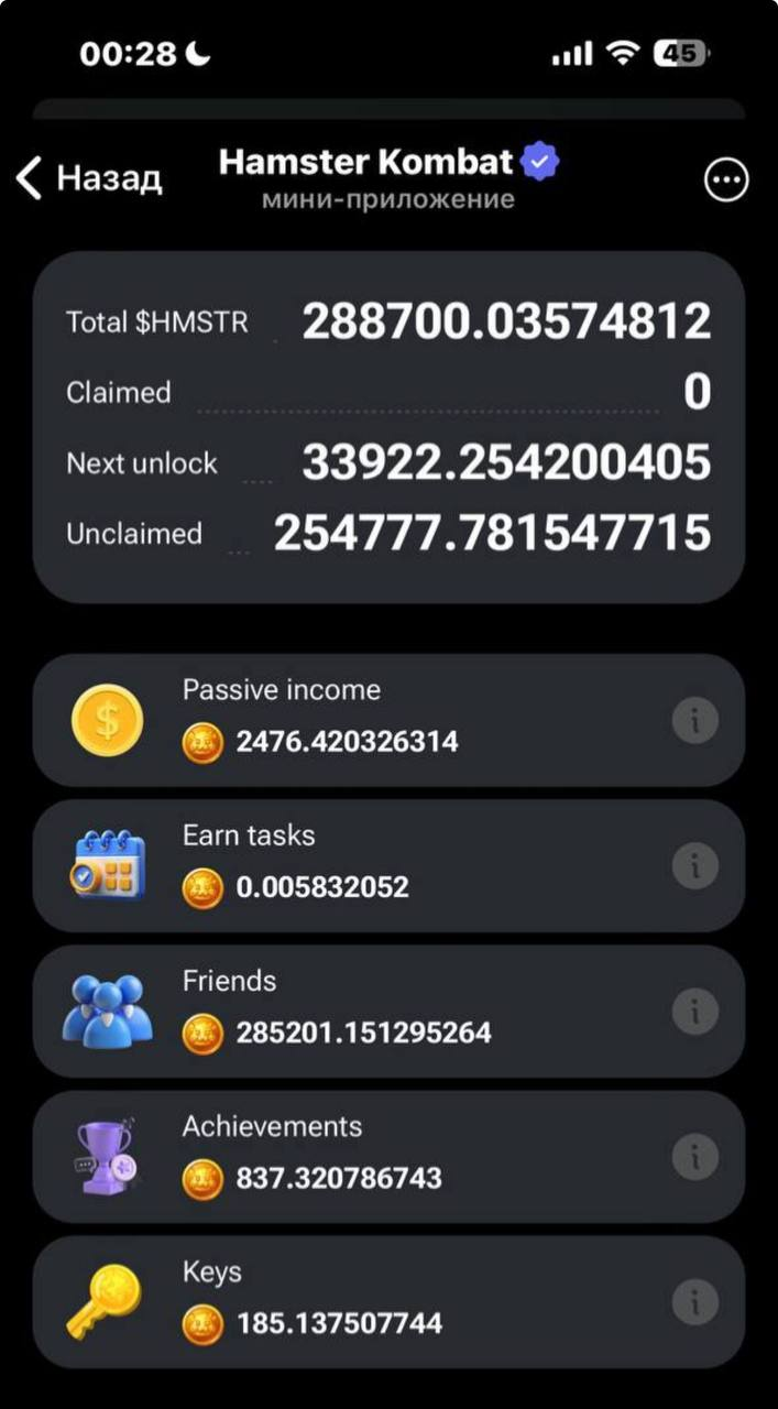 Хомяки не ссыте, крутой кит криптовейл сказал, что его друзья киты их телеграм канала сказали, что будут каждый день пампить хомяка по 10к биков в день. Скамяк будет стоить минимум 1000 долларов.