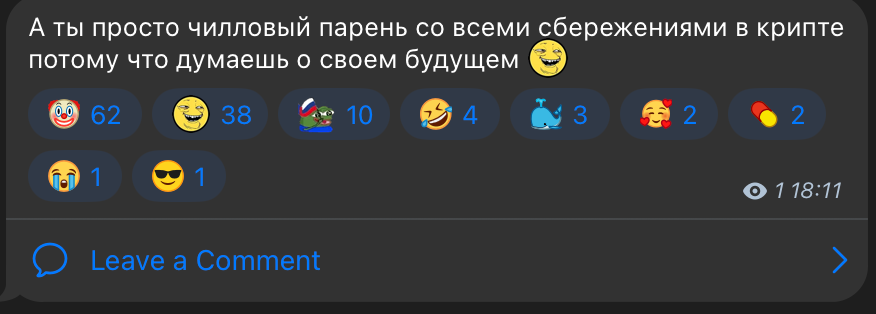 В конце концов пришёл к тому что покупаю фундаментал на долгосрок и откупаю дипы. В расчёте хотя бы на 5 лет минимум. И участвую в тестнетах, активностях, фармлю ретродропы. И с улыбкой смотрю на лудиков, которых сейчас бреют на казино и понимаю что уже прошёл этот грустный путь.