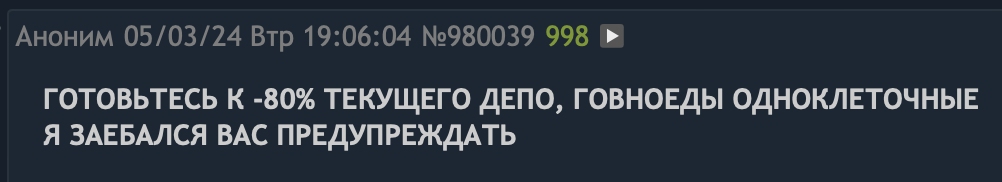 P.S. Нихуя себе вы насрали, я думал, что тред будет медленно пукать, так как народа адекватного мало и 90%+ осталось в треде лудикоговна.
