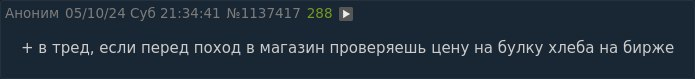 >>1245770 > У нас здесь уровень очень низкий Да, у нас тут реально очень низкий уровень: ИТТ обитает шизик-хохол-педофил-наркоман, который верит, что злые-злые админы централизованных бирж устанавливают цену на Монеру, что глупые-глупые продавцы на Бестчейндже не умеют самостоятельно выставлять цены и что закон спроса и предложения не работает.