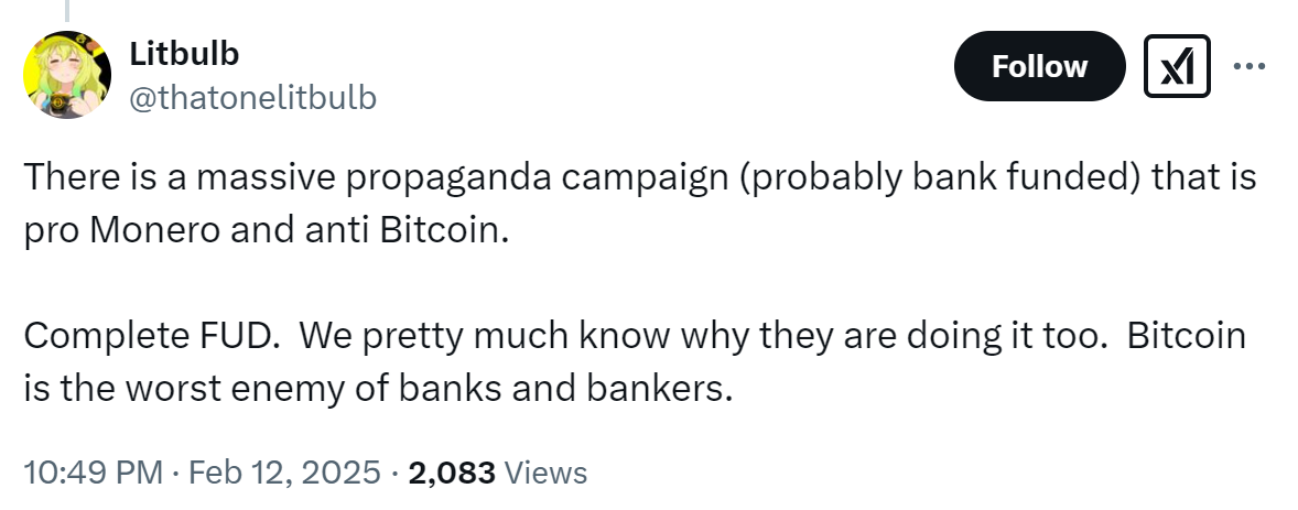 >>1224460 Не вижу смысла сравнивать xmr и условный sol, так как у второй монеты сообщество не рвет волосы на жопе, саботируя биржи. Покупая sol/btc/eth/говно/мочу я всегда уверен, что смогу выйти из нее быстро, надёжно, гарантированно, с минимальной комиссией и по рыночной цене. А есть еще мосты... Монеро-сообщество визжит, хрипя из последних сил, про необходимость анального окукливания, надрачивая на это до крови, но при этом своего решения, бай дизайн, как выйти из монеро - НЕ СУЩЕСТВУЕТ. Был вагон попыток, но ничего не взлетело. Не взлетело локалмонеро, институционалы насрали в трусы, не взлетело bisq, институционалы насрали в трусы, не взлетело hodl, институционалы насрали в трусы, не взлетело haveno, институционалы насрали в трусы, свопы ждут обновления уже года три, институционалы насрали в трусы, наверное. Но несмотря на эту объективную немощь (не надо плакаться на отсутствие финансирования, вы сами распугали всех инвесторов своей маняебанцой) монеро-сообщество продолжает визжать про биржи, которые виноваты во всем. Удобно придумать повод всех своих неудач и всю жизнь на этом съезжать. Может все эти сервисы не взлетели по каким-то другим причинам?