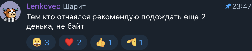 А новая голова норм пошла. Стабильная. Вот за ней реально будущее есть. Нет никаких душных китов, скамеров, конфоблядей. Идеально! Ну что ж, первый блин комом. Давайте уже ее развивать, хуле.