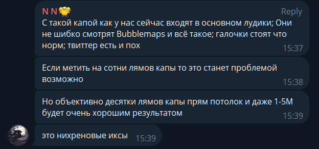 Составляется подробный гайд как можно реинвестировать монеты на руках в пул ликвидности (можно, я видел на других проектах), чтобы все желающие смогли свои монеты предоставить набигающим джонам, китайцам, инопланетянам, и прочей последующей за ними экзит ликвидностью.