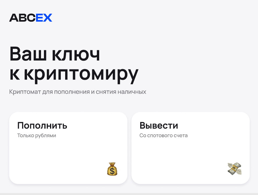 >https://abcex.io/ (есть криптоматы) Прочитав заглавную страницу сервиса, я понял, что для обмена крипта-рубль они предлагаю от же р2р. А это означает тех же дропов и треугольщиков. Чем тогда abcex лучше других?