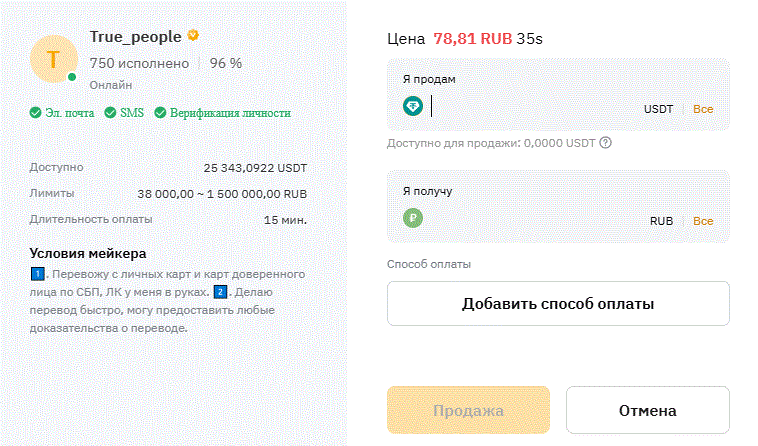 Сделки в основном от 3-лиц: белых треугольщиков и с карт доверенных лиц. Могут разбить платеж в 50к на 5-10 транзакций, поэтому уточняй заранее условия в чате. Сейчас Bybit банит аккаунты за 3-е лицо, процессинг, треугольники и разбитие платежей. На HTX белые треугольники разрешены, разбитие платежей не более 3-х.