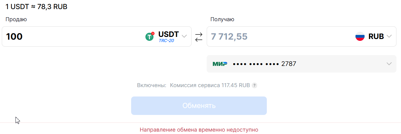 цель - продавать usdt и получать чистый безнал рубли на карту мир